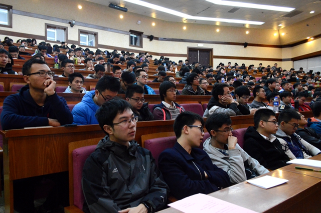 在完成十九大精神的傳遞后,唐嘉陵給參加本次報(bào)告會(huì)的師生講述了作為我國(guó)第一臺(tái)自主設(shè)計(jì)研制的深海載人潛水器主駕駛的心路歷程以及伴隨“蛟龍?zhí)枴弊呦蛏詈5钠D辛。30多次的下潛經(jīng)歷,7000多米的下潛深度,連續(xù)4年潛水器的駕駛經(jīng)歷;這一系列代表著成就的數(shù)字背后有著另外一串?dāng)?shù)字:6年深潛專業(yè)的學(xué)習(xí)和訓(xùn)練,一年中11個(gè)月在海上“放逐”,單次連續(xù)下潛作業(yè)長(zhǎng)達(dá)12小時(shí),正是這樣一種對(duì)海洋事業(yè)和深潛工作的堅(jiān)持和熱愛,唐嘉陵在太平洋底刻下了屬于中國(guó)的深度。隨后,唐嘉陵通過兩個(gè)珍貴的視頻資料向同學(xué)們展示了“蛟龍?zhí)枴笨瓶缄?duì)的海洋科考工作和海上日常生活,使同學(xué)們對(duì)神奇的海底世界充滿無限向往。最后,唐嘉陵講述了他的深海潛航夢(mèng)——把“蛟龍?zhí)枴贝蛟斐蔀閲?guó)內(nèi)國(guó)外科學(xué)研究的優(yōu)質(zhì)服務(wù)平臺(tái),并陳述了海洋領(lǐng)域人才缺乏的現(xiàn)象,希望有更多優(yōu)秀的人才能獻(xiàn)身海洋領(lǐng)域,共同把我國(guó)建設(shè)成為海洋強(qiáng)國(guó)。