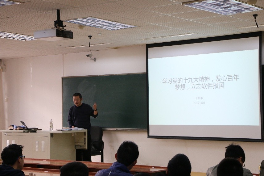 2017年11月4日下午1點在信息教學樓2006教室,軟件學院院長丁剛毅為軟件學院積極分子講解了主題為“學習黨的十九大精神,發(fā)心百年夢想,立志軟件報國”的黨課。丁院長首先向同學們強調(diào)了充分學習宣傳貫徹黨的十九大精神的重大意義,全面準確講解了黨的十九大精神。然后丁院長從中國共產(chǎn)黨黨史、中國近代史、軟件工程革命史、人類史等角度,幫助積極分子通過深刻認識歷史做到登高望遠。丁院長講解了十九大報告中出現(xiàn)的57個“心”字,如初心、同心、信心、核心、關(guān)心、核心、心連心等,引導積極分子不忘申請入黨的初心。最后,丁院長要求積極分子要認真學習、研讀十九大精神,通過政治學習提高自己的專注力,努力為專業(yè)發(fā)展、國家發(fā)展、人類發(fā)展做出貢獻。