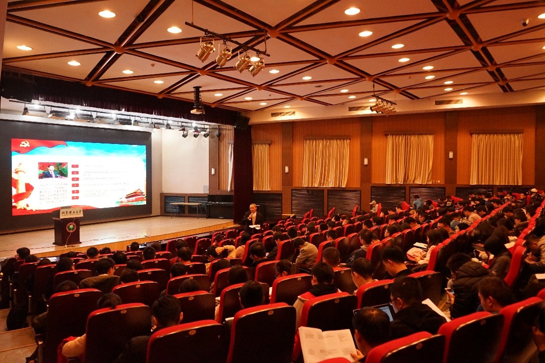 2017年11月11日上午9點在七號樓報告廳,軟件學院黨委書記、學校黨的十九大精神宣講團成員曲大成為軟件學院學生黨員和積極分子解讀了十九大精神,曲書記從如何解讀十九大報告出發(fā),給大家從“過去五年的工作和歷史性變革”、“新時代中國共產(chǎn)黨的歷史使命”“ 習近平新時代中國特色社會主義思想”、“決勝全面建成小康社會,開啟全面建設社會主義現(xiàn)代化國家新征程”等角度全面講解了十九大報告,最后引出了十九大報告中習近平總書記對于青年人的殷切希望,曲書記告誡青年學生要牢記總書記囑托,將自身發(fā)展與中國共產(chǎn)黨事業(yè)、國家和民族事業(yè)融為一體,提高政治站位,樹立強大的歷史自豪感和發(fā)展責任感,結(jié)合軟件專業(yè),勇敢實踐,牢記兩個一百年歷史重任,發(fā)揮軟件專業(yè)特長,擔負起歷史使命。