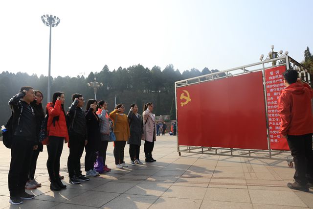 參觀結束后,在2017級博士崔暢同學的帶領下,全體黨員重溫入黨誓詞,緬懷先烈。在鮮艷的黨旗下,黨員們舉起右手,莊嚴宣誓,再次體會作為一名共產黨員的崇高信念和重要責任。