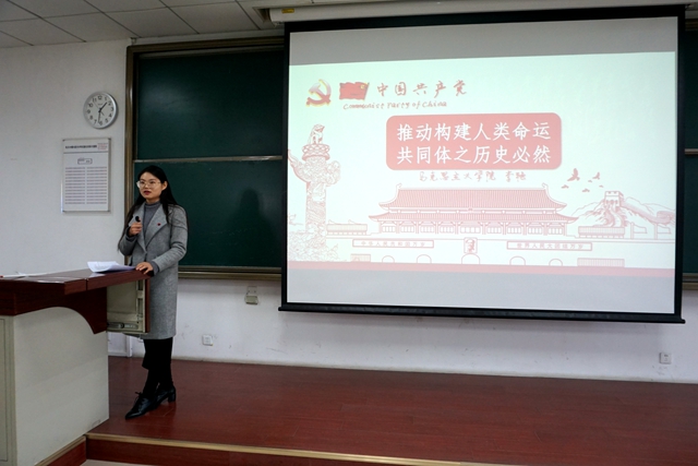 校級(jí)學(xué)習(xí)小組成員的宣講以十九大報(bào)告原文為范本,結(jié)合當(dāng)下社會(huì)熱點(diǎn),引導(dǎo)學(xué)生黨員和其他學(xué)生關(guān)注黨和國(guó)家大事,在學(xué)生當(dāng)中起到了統(tǒng)一思想、凝心聚力的效果。生命學(xué)院2017級(jí)碩士生劉田田結(jié)合十九大報(bào)告第七部分,圍繞“文化自信是什么”“為什么要堅(jiān)定文化自信”“當(dāng)代大學(xué)生如何堅(jiān)定文化自信”等三個(gè)方面,引導(dǎo)同學(xué)們學(xué)習(xí)和領(lǐng)悟中華優(yōu)秀傳統(tǒng)文化的豐富內(nèi)涵,特別是社會(huì)主義核心價(jià)值觀,做中華優(yōu)秀傳統(tǒng)文化的忠實(shí)傳承者和弘揚(yáng)者;馬克思主義學(xué)院2017級(jí)碩士生李艷結(jié)合十九大報(bào)告第十二部分,從共同體的四種形態(tài)即自然共同體、虛幻共同體、抽象共同體、人類命運(yùn)共同體出發(fā),向同學(xué)們闡述了人類命運(yùn)共同體的真正內(nèi)涵以及提出人類命運(yùn)共同體的現(xiàn)實(shí)價(jià)值,并提出要把自己的夢(mèng)想與中國(guó)夢(mèng)緊密結(jié)合,把個(gè)人利益追求置于社會(huì)總體利益實(shí)現(xiàn)之中,不斷奮進(jìn)、砥礪前行;徐特立學(xué)院2015級(jí)本科生趙梓辰結(jié)合十九大報(bào)告第十一部分,列舉香港和澳門“一國(guó)兩制”制度取得成功的事例,引導(dǎo)同學(xué)們要堅(jiān)持黨的領(lǐng)導(dǎo),敢于同臺(tái)獨(dú)等分裂勢(shì)力做斗爭(zhēng),堅(jiān)定“一個(gè)中國(guó)”的政治立場(chǎng)不動(dòng)搖,以實(shí)際行動(dòng)維護(hù)祖國(guó)統(tǒng)一。