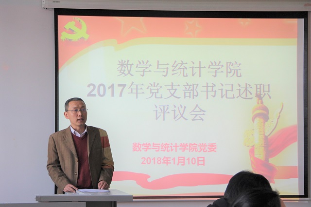 1月10日上午,數(shù)學與統(tǒng)計學院黨委在良鄉(xiāng)校區(qū)理學樓A-305召開了2017年黨支部書記述職評議會。數(shù)學與統(tǒng)計學院全體黨委委員、教工黨支部和學生黨支部書記、組織委員、宣傳委員,以及教師和學生代表共49人出席了本次評議會,大會由學院副院長、副書記馬曉寧主持。