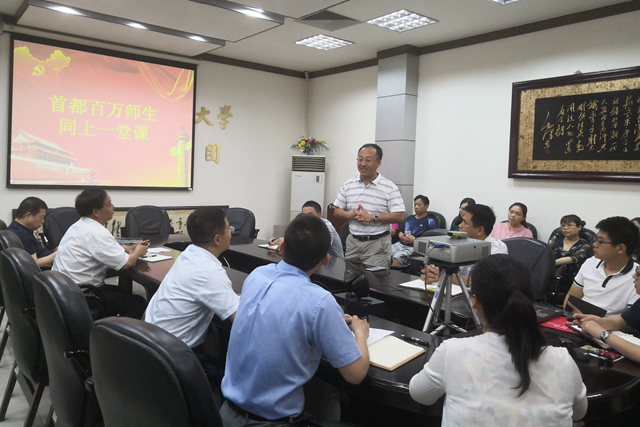 為深入學(xué)習(xí)貫徹習(xí)近平新時(shí)代中國(guó)特色社會(huì)主義思想和黨的十九大精神,根據(jù)“做新時(shí)代‘四有’好老師和‘四個(gè)引路人’”學(xué)習(xí)實(shí)踐活動(dòng)要求,6月7日下午,后勤集團(tuán)組織黨員干部職工準(zhǔn)時(shí)開(kāi)課,集團(tuán)黨委在延園招待所六層會(huì)議室設(shè)置集中觀看點(diǎn)外,另有五個(gè)觀看點(diǎn)共計(jì)185人同一時(shí)間觀看“首都百萬(wàn)師生同上一堂課”特別節(jié)目。