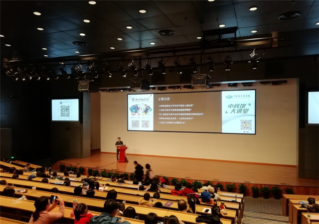 上午十時,同學們準時在中國科技館一層報告廳就座,參加由中國航天系統(tǒng)科學與工程研究院蔣宇平研究員主講的《飛向太空》航天科普講座。本次講座中,蔣宇平研究員從什么是“航天”講起,重點介紹了中國航天誕生以來的光輝歷程和輝煌成就,穿插介紹航天基本知識和原理,講述月球探測和載人航天的故事,展望人類未來探索宇宙奧秘的宏偉計劃和夢想。