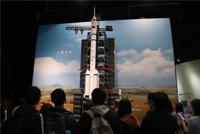 講座結束之后,同學們來到了科技館四層的“太空探索”展廳。展廳設置了飛天之夢、登天之梯、人造衛(wèi)星、載人飛天、奔向月球、邁向深空六個主題展區(qū)。從嫦娥奔月到萬戶飛天,再從我國第一顆人造衛(wèi)星“東方紅一號”發(fā)射到玉兔二號駛抵月球表面,展館生動形象的展示了中國航天從歷經(jīng)艱辛到舉世矚目的曲折歷程,給同學們留下了深刻的印象。