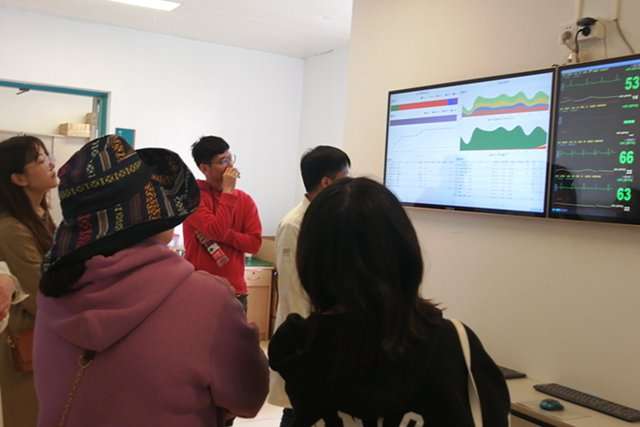 “這里顯示的是現(xiàn)在患者的實時監(jiān)測數(shù)據(jù),患者通過穿著一個隨身背心可實時將心率、呼吸等監(jiān)測數(shù)據(jù)傳輸?shù)浆F(xiàn)在的屏幕上,異常情況也能及時報告給醫(yī)護人員,可實現(xiàn)24小時監(jiān)測,不影響患者的自由活動?!?月22日下午,在中國人民解放軍總醫(yī)院急救設(shè)備供應(yīng)中心,北理工生命學(xué)院2018級博士黨支部參觀了由醫(yī)院醫(yī)學(xué)工程保障中心團隊自主研發(fā)的醫(yī)療設(shè)備全壽命周期管理平臺和生命體征信息實時監(jiān)測平臺,并對于臨床可穿戴醫(yī)療設(shè)備的應(yīng)用發(fā)展及醫(yī)療數(shù)據(jù)管理進行了探討。博士生黨員們能夠深入解放軍總醫(yī)院的先進醫(yī)工平臺進行參觀,得益于生命學(xué)院實施“紅色1+1”工作中積極開展的“黨建+”主題黨日活動。
