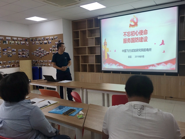 航電所黨總支委員、所長段亞作了《不忘初心使命,服務國防建設》的報告,帶領與會黨員共同學習了共產黨人的初心和使命,講述了航空人踐行航空報國初心、航空強國使命的實踐,介紹了試飛人“向國家負責”精神在工作中的體現(xiàn)。他希望大家要堅定理想信念,樹立遠大理想,胸懷家國情懷,珍惜青春韶華,既要“仰望星空”,又要“腳踏實地”,為實現(xiàn)中華民族偉大復興的中國夢而努力奮斗。