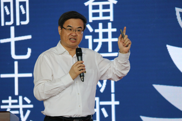 7月29日,學(xué)校組織國慶70周年慶?;顒訉W(xué)生誓師大會,趙長祿為各大隊(duì)授旗,并為廣大參與學(xué)生作動員講話。他講述了在歷次國慶慶典中,北理工師生從不缺席,用自己的智慧和汗水一次又一次圓滿完成了各項(xiàng)任務(wù)的光榮事跡,勉勵(lì)同學(xué)們要堅(jiān)定理想信念、厚植家國情懷、磨煉意志品質(zhì)、擔(dān)負(fù)起黨和國家賦予的時(shí)代使命。