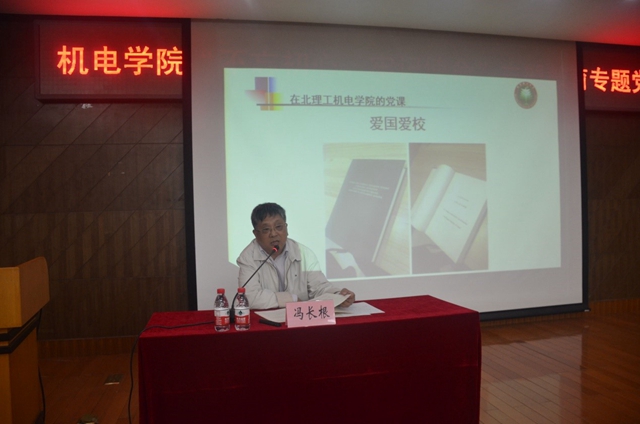 為全面貫徹落實習近平總書記在“不忘初心、牢記使命”主題教育工作會議上的重要講話和《中共中央關(guān)于在全黨開展“不忘初心、牢記使命”主題教育的意見》精神,加強全院師生的愛國主義教育,10月21日下午,機電學院在中關(guān)村校區(qū)圖書館報告廳召開“不忘初心、牢記使命”主題教育專題黨課,邀請馮長根教授為主講人,機電學院全體院領(lǐng)導、全體教工黨支部書記、學生黨支部書記、新聘任教師及部分學生代表參加了此次黨課。