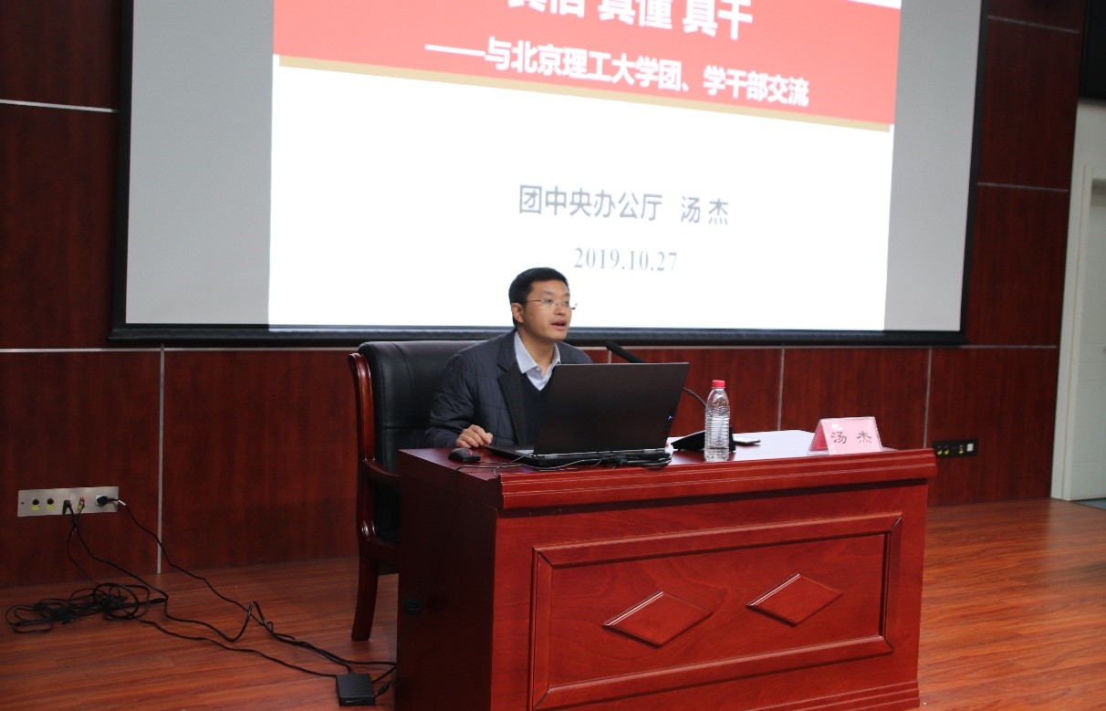 湯杰作了題為《真信、真懂 、真干》的輔導(dǎo)報(bào)告。他回顧了北理工參與國(guó)慶70周年慶?;顒?dòng)的主要情況,分享了他眼中的北理工和北理工精神,鼓舞學(xué)生骨干傳承紅色基因,勇敢擔(dān)負(fù)新時(shí)代賦予當(dāng)代北理工青年的使命責(zé)任。授課過程中,他從青年信仰解讀、青年工作理論、引導(dǎo)青年的方式方法出發(fā),與同學(xué)們交流了怎樣當(dāng)好一名優(yōu)秀學(xué)生骨干。他鼓勵(lì)同學(xué)們牢記習(xí)近平總書記提出的“理想、愛國(guó)、擔(dān)當(dāng)、奮斗、學(xué)習(xí)、品德”六方面希望,從現(xiàn)在做起、從小事做起,努力求真學(xué)問、練真本領(lǐng),不斷奮發(fā)成長(zhǎng)成才。