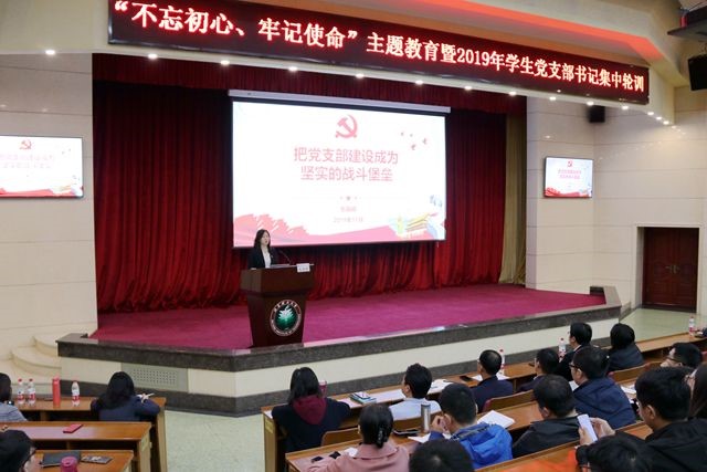 本次集中輪訓(xùn)為期三天,共計(jì)24學(xué)時(shí),包含理論學(xué)習(xí)、實(shí)踐培訓(xùn)、小組討論和交流分享四個(gè)板塊。在“不忘初心、牢記使命”主題教育統(tǒng)一安排下,包麗穎結(jié)合學(xué)習(xí)調(diào)研成果講授專題黨課,主題為《把黨支部建設(shè)成為堅(jiān)強(qiáng)戰(zhàn)斗堡壘》。她從為什么強(qiáng)調(diào)不忘初心、牢記使命,深刻體悟開展主題教育的意義等三個(gè)方面,為學(xué)生黨支部書記深入講解了開展“不忘初心、牢記使命”主題教育的重大意義。并就學(xué)生黨支部建設(shè)的重要性、現(xiàn)有的做法與成效、問題及挑戰(zhàn)以及加強(qiáng)學(xué)生黨支部建設(shè)的方法和路徑等四個(gè)方面進(jìn)行了詳細(xì)闡述,加深了學(xué)生黨支部書記對(duì)學(xué)生黨建和學(xué)生黨支部工作重要性的認(rèn)識(shí)和理解。她強(qiáng)調(diào),面對(duì)新形勢新挑戰(zhàn),學(xué)生黨支部書記需要準(zhǔn)確把握學(xué)校改革發(fā)展的新任務(wù)新要求,進(jìn)一步提高對(duì)高校學(xué)生黨建工作的認(rèn)識(shí),深刻認(rèn)識(shí)自身肩負(fù)的光榮職責(zé)與使命,始終保持昂揚(yáng)向上的精神狀態(tài)和永不懈怠的奮斗姿態(tài),珍惜時(shí)代賦予的難得的發(fā)展機(jī)遇,為實(shí)現(xiàn)中華民族偉大復(fù)興的中國夢貢獻(xiàn)力量!