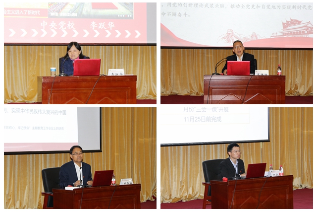 中央黨校機(jī)關(guān)黨委宣傳處處長李躍華、數(shù)學(xué)學(xué)院黨委書記高偉濤、馬克思主義學(xué)院黨總支書記劉存福、黨委組織部副部長何驍威,分別以《深入學(xué)習(xí)貫徹習(xí)近平新時(shí)代中國特色社會(huì)主義思想 做有理想有擔(dān)當(dāng)?shù)男氯恕贰稄妮x煌成就看中國特色社會(huì)主義力理論制度優(yōu)勢》《做一名優(yōu)秀的學(xué)生黨支部書記》《學(xué)生黨支部建設(shè)實(shí)務(wù)專題》為主題,深入解讀了習(xí)近平新時(shí)代中國特色社會(huì)主義思想,強(qiáng)調(diào)學(xué)生黨支部書記要在學(xué)懂弄通做實(shí)上下功夫,從“堅(jiān)定初心使命、模范黨員義務(wù)、黨支部建設(shè)”三個(gè)方面開展好工作,強(qiáng)化支部政治功能,推進(jìn)支部規(guī)范化建設(shè)。