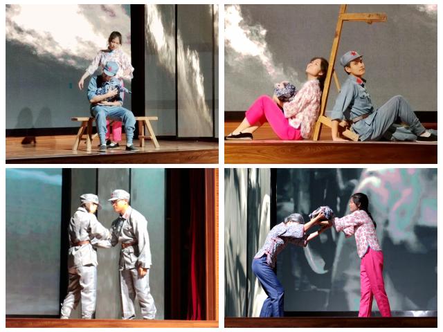 話劇展演于19:00準(zhǔn)時(shí)開始,共分為《序》《井岡兒女》《星火凌云》《青谷長(zhǎng)歌》《十送紅軍》和《尾聲》六個(gè)部分,以一位革命戰(zhàn)士后代讀家書、回憶父輩故事的方式再現(xiàn)了革命戰(zhàn)爭(zhēng)時(shí)期共產(chǎn)黨人為民族解放而浴血戰(zhàn)斗的故事和井岡人民與工農(nóng)紅軍的魚水之情。小丹飾演者黃沁怡,秋生飾演者張?jiān)迫鹨约捌渌麉⒀萑藛T用飽滿的熱情和投入的演出向觀眾傳達(dá)了老一輩革命者心懷理想,不畏艱險(xiǎn),為民族解放而不懈奮斗的精神與情懷。