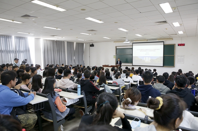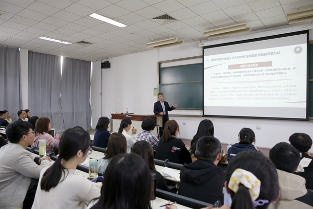“我印象最深的一句話就是‘馬克思主義理論是我們認(rèn)識世界、改造世界的強(qiáng)大思想武器’。書記鼓勵我們學(xué)好、用好馬克思主義哲學(xué),要求我們好好研究馬克思主義的方法論,以習(xí)近平新時代中國特色社會主義思想武裝我們的頭腦、指導(dǎo)我們的實(shí)踐、推動我們的學(xué)習(xí)和工作”。在課后的訪談中,來自2020級明德書院的龍宣羽同學(xué)不無感慨地說道。在第一部分的授課內(nèi)容中,趙長祿以“中國特色社會主義進(jìn)入新時代”作為開場,對新時代戰(zhàn)略目標(biāo)、新時代指導(dǎo)思想進(jìn)行了深入的解讀,并向同學(xué)們細(xì)致闡釋了習(xí)近平新時代中國特色社會主義思想的豐富內(nèi)涵,深化了同學(xué)們對馬克思主義中國化最新理論成果——習(xí)近平新時代中國特色社會主義思想的認(rèn)識。