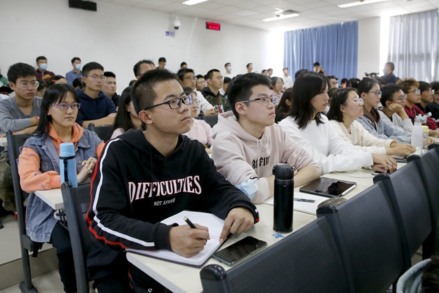 “2020年,更加強(qiáng)調(diào)以人民為中心,將人民群眾的生命安全和身體健康放在最重要的位置”,趙長祿以新冠肺炎疫情在全球的大流行為切入點(diǎn),為同學(xué)們分析了我國經(jīng)濟(jì)社會發(fā)展面臨的新形勢。他講到,當(dāng)今國際形勢風(fēng)云變幻,國內(nèi)環(huán)境深刻變化,“危”與“機(jī)”并存,想要抓住新一輪產(chǎn)業(yè)變革和科技革命所帶來的重大歷史機(jī)遇,就要保持戰(zhàn)略定力、緊緊圍繞全面建設(shè)社會主義現(xiàn)代化強(qiáng)國目標(biāo),做好自己的事情。趙長祿引導(dǎo)同學(xué)們思考這樣一個問題:“結(jié)合國家的戰(zhàn)略需求和學(xué)校的人才培養(yǎng)目標(biāo),‘我’應(yīng)該樹立什么樣的志向,確立什么樣的目標(biāo)?”