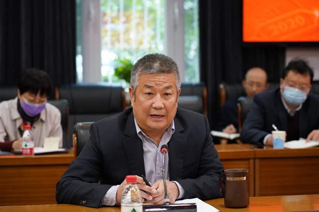 教務(wù)部部長(zhǎng)栗蘋(píng)首先匯報(bào)了學(xué)校課程思政建設(shè)情況。她從指導(dǎo)思想、建設(shè)目標(biāo)、重要舉措和組織保障四個(gè)方面作了重點(diǎn)介紹,并提出了下一階段工作的建設(shè)任務(wù)和實(shí)施方案。