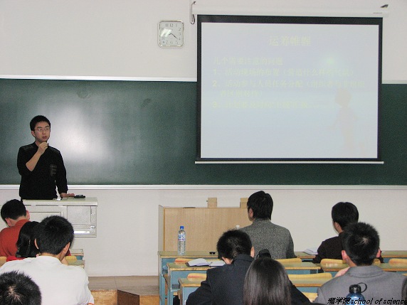 2006年11月15日(星期三)晚19:00,一年一度的理學(xué)院學(xué)生社團(tuán)干部培訓(xùn)如期舉行。一季季分團(tuán)委的窗外青綠變成了澄黃,一代代理學(xué)院學(xué)生干部舊貌換新顏。當(dāng)碩果累累的2005學(xué)年悄然走遠(yuǎn),輝煌映在昨日,2006學(xué)年是嶄新的白紙,充滿了想象但依然任重道遠(yuǎn)。精誠團(tuán)結(jié)、善行善思,理學(xué)院分團(tuán)委周波、李明智、安泰、盧俊峰四位老師以他們個(gè)性的方式,以真切的體驗(yàn)依次向理學(xué)院新一屆的學(xué)生社團(tuán)干部講授了一堂內(nèi)容充實(shí)、形式活潑的培訓(xùn)課程,使大家受益匪淺。