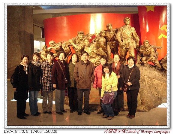 在紀(jì)念中國工農(nóng)紅軍長征勝利70周年之際,外國語學(xué)院師生黨員代表在院黨委書記王文清、副院長林彤和副院長、副書記吳文君老師的帶領(lǐng)下,于11月24日下午赴中國人民革命軍事博物館參觀了“偉大壯舉,光輝歷程——紀(jì)念中國工農(nóng)紅軍長征勝利70周年展覽”。