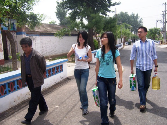 在“村官”周航同學(xué)的帶領(lǐng)下,黨支部成員首先參觀齊家務(wù)村的新農(nóng)村建設(shè)情況,黨員們通過(guò)自身感受,深刻的理解了新農(nóng)村建設(shè)的巨大成就和深遠(yuǎn)意義,黨支部自費(fèi)印制了有關(guān)奧運(yùn)和抗震相關(guān)知識(shí)的簡(jiǎn)明手冊(cè),向村民們發(fā)放宣傳,并做了有關(guān)奧運(yùn)和抗震的問(wèn)卷調(diào)查活動(dòng)。