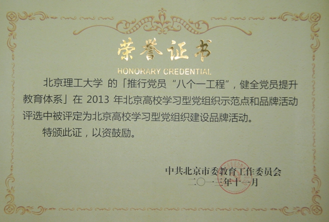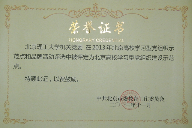 北理工在2013年北京高校學(xué)習(xí)型黨組織建設(shè)示范點(diǎn)和品牌活動(dòng)評(píng)選中勇創(chuàng)佳績