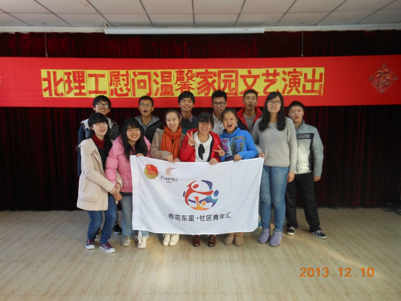 2013年12月10日,作為校團(tuán)委與燕山杏花東里社區(qū)青年匯共建活動(dòng)的一部分,基礎(chǔ)教育學(xué)院信息二部團(tuán)總支組織自動(dòng)化學(xué)生會(huì)良鄉(xiāng)分會(huì)的志愿者們來到了杏花東里“溫馨家園”,與那里的智障人士以及社區(qū)居民共同獻(xiàn)上了一場(chǎng)別開生面的文藝演出。