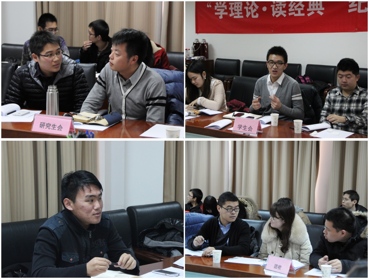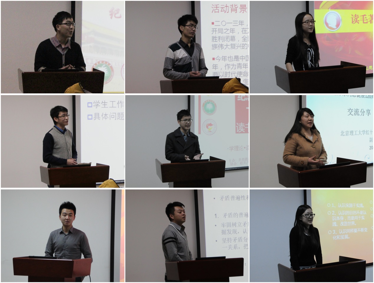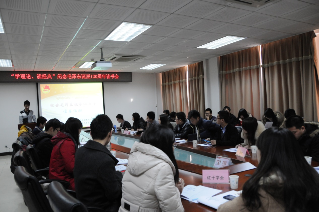 12月21日,由共青團北京理工大學委員會主辦的“學理論•讀經典——紀念毛澤東同志誕辰120周年讀書會”在中關村校區(qū)研究生樓111順利舉行。參加此次活動的有校團委組織部、校學生會、研究生會、學生社團聯(lián)合會、共產主義學習實踐總會、延河之星志愿者總隊和紅十字會學生分會等組織的學生骨干。
