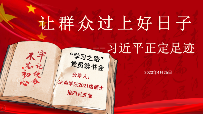 在第28個世界讀書日到來之際,為營造良好學(xué)習(xí)氛圍,生命學(xué)院2021級碩士第四黨支部舉行以《讓群眾過上好日子——習(xí)近平正定足跡》第三十期黨員讀書分享會。讀書分享會由支部書記樊玥蕓主持,學(xué)院黨委副書記、副院長郭惠芝和全體學(xué)生黨支部書記共同學(xué)習(xí)交流。