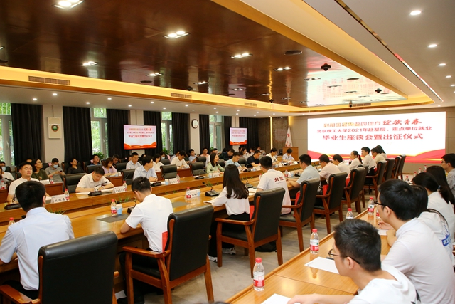 6月24日下午,北京理工大學(xué)2021年赴基層、重點(diǎn)單位就業(yè)畢業(yè)生座談會暨出征儀式在2號辦公樓133會議室舉行。