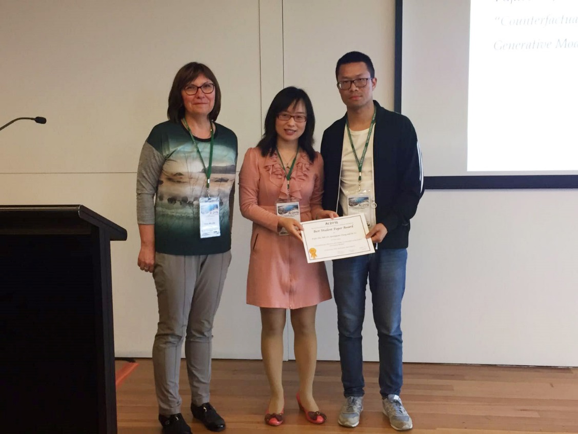 Prof Tanja Mitrovic為朱福進(jìn)博士(右)頒獎(jiǎng) 日前,“第31屆澳大拉西亞人工智能聯(lián)合會(huì)議(Australas...