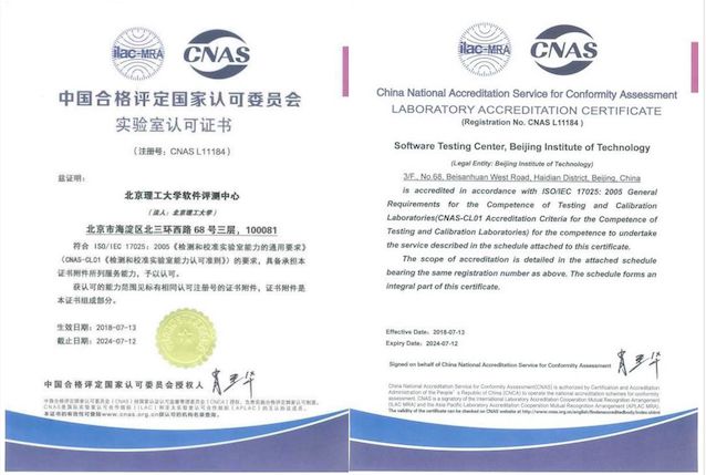 北京理工大學(xué)軟件評(píng)測(cè)中心順利取得CNAS認(rèn)可證書