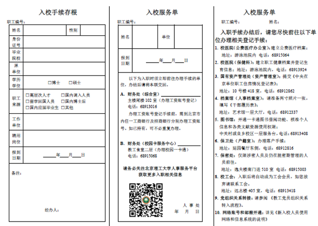 到人事處開具“入校服務單”,領取入職資料包,然后再到財務處登記工資賬號,辦理校園一卡通,僅僅需要簡單的兩個步驟,新入職的A系列教職...