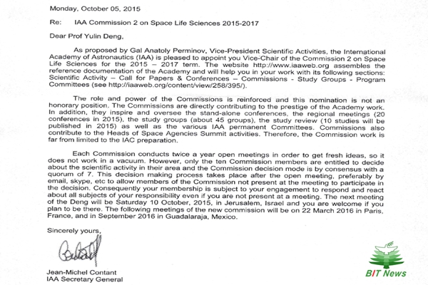北理工鄧玉林教授當選國際宇航科學院院士及學術(shù)委員會副主席