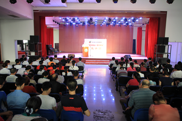 2015年6月26日下午2:00,后勤集團(tuán)黨委主辦的2015年“愛崗敬業(yè) 服務(wù)奉獻(xiàn)”首場走進(jìn)餐飲、接待、商業(yè)、幼教中心的宣講活動在新食...
