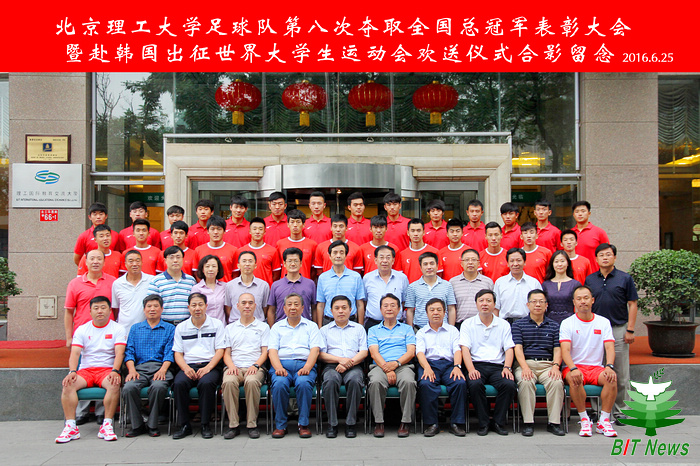 6月25日,北京理工大學(xué)足球隊(duì)奪冠表彰會(huì)暨赴韓國(guó)出征世界大學(xué)生運(yùn)動(dòng)會(huì)歡送儀式在北理工國(guó)際交流中心舉行。
