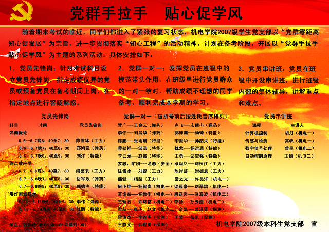 “黨群手拉手 貼心促學(xué)風(fēng)”——機(jī)電學(xué)院考試周系列報(bào)道之一