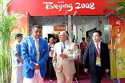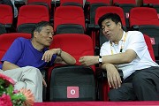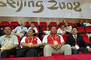 8月15日,巴西體育部長奧蘭多·席爾瓦(左) 一行來到北京理工大學(xué)體育館觀看巴西女排與哈薩克斯坦女排的比賽在剛剛結(jié)束的北京奧運(yùn)會(huì)女...