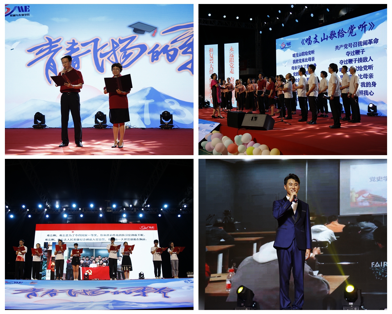 各支部黨員代表共同帶來的朗誦《青春的河》,在同志們飽含深情的訴說中緩緩淌過你我腳畔;初心不忘青春志,熱血共筑中國夢,歌曲《不忘初心》表達(dá)了三院學(xué)子傳承紅色基因,永遠(yuǎn)跟黨走的堅(jiān)定信念;在馮慧華和薛慶的深情朗誦后,由機(jī)械學(xué)院教師組成的“魅力機(jī)車合唱團(tuán)”,在校學(xué)生交響樂團(tuán)合唱團(tuán)藝術(shù)總監(jiān)賀春華的指揮下,共同演唱《唱支山歌給黨聽》,用歌聲傳遞了教師們對黨的忠誠與熱愛,和對偉大的中國共產(chǎn)黨100周年華誕的真摯祝福;老師們又以一曲《再見》,將對學(xué)生們的送別娓娓道來,為即將遠(yuǎn)航的畢業(yè)生們送出最真誠的祝福。