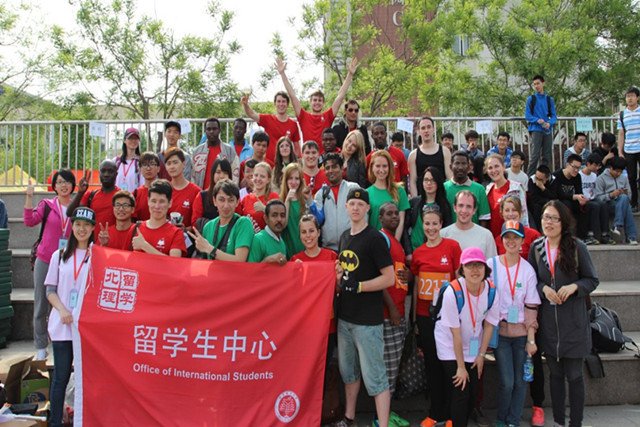 就像奧運會的入場式一樣,留學生中心也有自己的隊伍,來自白俄羅斯的阿蓮娜擔任先導員,北京理工大學第38屆深秋歌會總決賽冠軍、來自津巴布韋的趙勝利擔任旗手。師生們放松又愜意,隨性又張揚,無論如何也掩飾不住內(nèi)心的雀躍和歡騰。讓人沒想到的是,站在跑道一側(cè)的拉拉隊員,看到留學生們后似乎比留學生們還要興奮和快樂,這也許是因為留學生作為一個方陣第一次在綠茵場上亮相,第一次如此高調(diào)的出現(xiàn)在北理工師生們的視野中的緣故,所以才引來了驚奇的目光和熱情的歡呼。