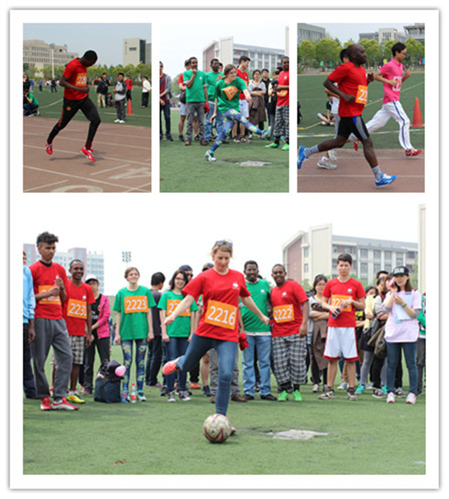 賽場上,同學們互相加油、送水、攙扶,就連我們加油的話語也是五花八門、各種語言混雜。每一個走下賽場的同學都會受到朋友們的熱情擁抱。”Give me five!” ,擊掌慶祝。很多中國同學也會跑過來和自己的外國同學說:“你跑的真快,祝賀你。”這種互動,正是我們要參加這次運動會的初衷之一:我們希望我們的外國留學生能夠更進一步融入學校的氛圍,進入到中國學生的生活中,從而能夠讓他們廣交朋友、敞開心扉,在中國生活的更舒暢。