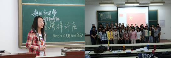 國際經(jīng)濟(jì)與貿(mào)易文科團(tuán)支部開展了“我的中國夢——與信仰對話”主題團(tuán)日活動,邀請了2014年度青春榜樣候選人鄭方圓學(xué)姐就“學(xué)以致用、在職謀政、豐富見聞” 三個方面的內(nèi)容分享了自己的心得。同學(xué)們認(rèn)真聆聽、積極發(fā)問,在面對面的交流,心與心的溝通中獲得感悟和提升。
