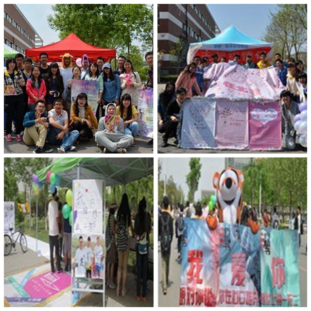 在各學(xué)院開展的活動(dòng)中,信息與電子一學(xué)部舉辦“愛在北理•七天契約情侶”、 “‘微關(guān)愛•漂流瓶’之free hugs”、 “‘校園微公益•善行樂我心’之減壓節(jié)”、“北理風(fēng)箏繪”、“拔河賽”等新穎豐富的活動(dòng)。信息與電子二學(xué)部舉辦 “‘微關(guān)愛•漂流瓶’之free hugs”、“說一次,我愛你”、“我衫我繪”等活動(dòng)。