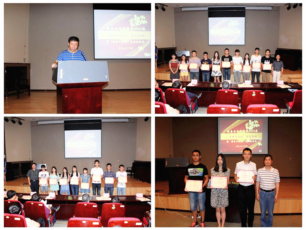 6月26日,信息與電子學院2014屆“金牌畢業(yè)生”評選答辯暨“德育小導師”成果報告會在7號報告廳隆重舉行。信息與電子學院黨委書記安建平、副院長徐曉文、副書記副院長黨華、副院長薛正輝、副院長何遵文、副院長楊靜,2010級畢業(yè)生班主任、輔導員及2011級260余名學生代表出席了此次活動。信息與電子學院團委老師韓融擔任主持。