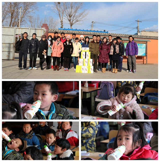 為增強同學環(huán)保意識,同時讓同學們感受給予愛的快樂,12月初理材學部舉辦了“漂流瓶 充滿愛”活動。活動要求以宿舍為單位收集礦泉水瓶,收集5瓶以上就可為房山區(qū)打工子弟小學——民仁小學的孩子們贏得鈣奶一瓶。活動共有400余人參與,贏得鈣奶120瓶。12月16日理材學部學生會及宿舍代表將這些奶送到了孩子們手里。孩子們開心的笑臉,讓在場所有同學感受到了給予的快樂。