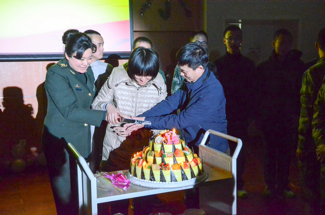 最令人感動(dòng)與驚喜的,則是晚會(huì)預(yù)設(shè)的“神秘環(huán)節(jié)”。選培辦為18周歲的同學(xué)精心準(zhǔn)備了蛋糕,既是過(guò)一個(gè)集體生日,也是舉行一場(chǎng)特殊的成人禮。選培辦主任尤靜和校長(zhǎng)助理姚利民親自為大家切分蛋糕。姚校長(zhǎng)助理即興發(fā)表了熱情洋溢的講話,表達(dá)了對(duì)國(guó)防生誠(chéng)摯的祝福和真心的祝愿,教導(dǎo)同學(xué)們要倍加珍惜國(guó)防生這個(gè)光榮的稱號(hào),鼓勵(lì)大家自立自信自強(qiáng),成長(zhǎng)成人成才!聆聽(tīng)領(lǐng)導(dǎo)們的諄諄教誨,品味領(lǐng)導(dǎo)們的真摯祝福,同學(xué)們不僅感受到了無(wú)微不至的關(guān)懷,更在千里之外的寒冬中感受到了如家一般的溫暖。