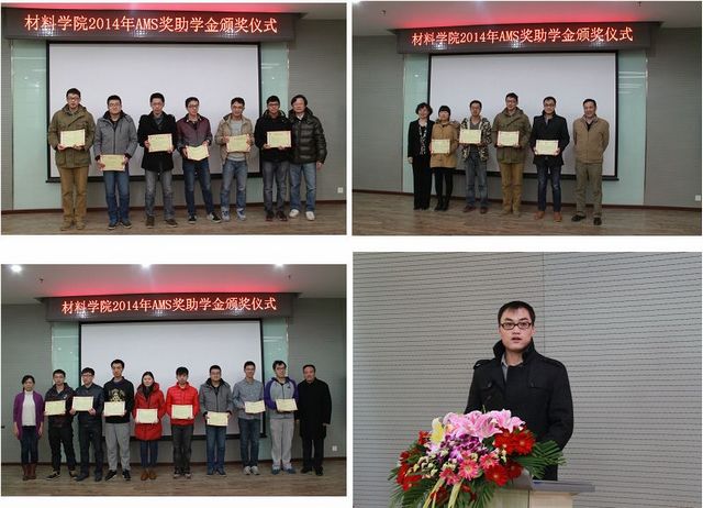 首先,頒發(fā)的是材料學(xué)院2014年度AMS獎(jiǎng)助學(xué)金。佛山先進(jìn)機(jī)械設(shè)備有限公司(AMS)作為國內(nèi)從事表面工程技術(shù)的知名企業(yè),事業(yè)蓬勃發(fā)展的同時(shí)不忘心系教育事業(yè),從2005年期連續(xù)十年在材料學(xué)院設(shè)立獎(jiǎng)助學(xué)金,每年捐贈(zèng)五萬元,累計(jì)捐贈(zèng)五十萬元,300余名學(xué)生得到獎(jiǎng)勵(lì)和資助。