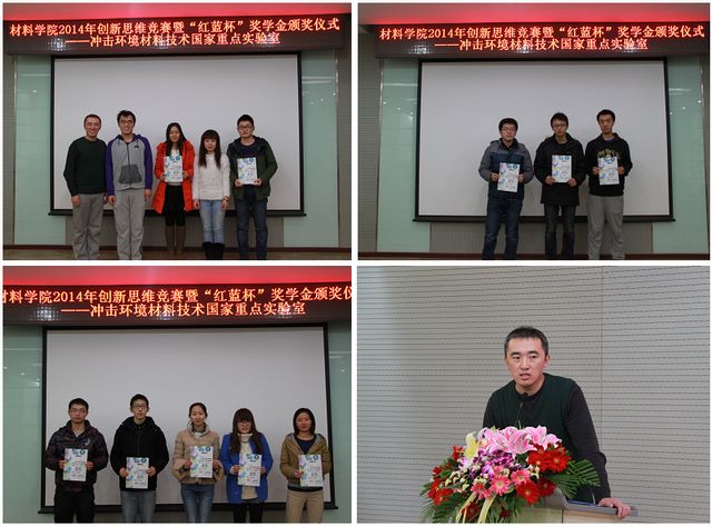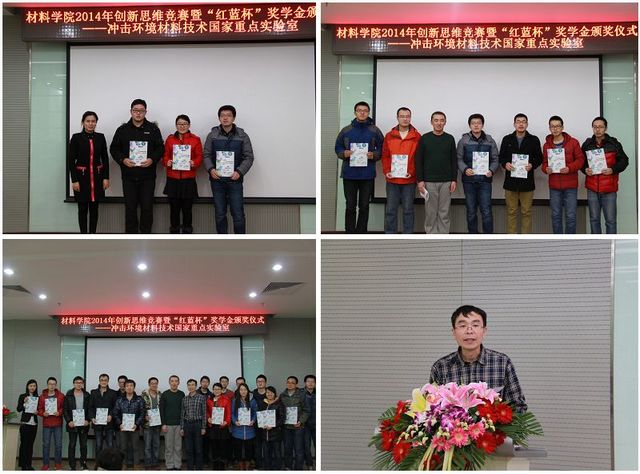 接下來,頒發(fā)了材料學(xué)院2014年度沖擊材料環(huán)境技術(shù)國家重點(diǎn)實(shí)驗(yàn)室創(chuàng)新思維競賽獎(jiǎng)。此項(xiàng)競賽是由材料學(xué)院沖擊材料環(huán)境技術(shù)國家重點(diǎn)實(shí)驗(yàn)室主辦,鼓勵(lì)和支持廣大研究生、本科生同學(xué)了解和掌握材料科技前沿動(dòng)態(tài),鍛煉和增強(qiáng)個(gè)人科研素養(yǎng)和綜合素質(zhì),激發(fā)同學(xué)們的創(chuàng)新思維和拔尖意識(shí),同時(shí)發(fā)揮重點(diǎn)實(shí)驗(yàn)室高水平人才培養(yǎng)能力,引導(dǎo)同學(xué)們根據(jù)個(gè)人興趣和靈感,在重點(diǎn)實(shí)驗(yàn)室開放式平臺(tái)上開展科研創(chuàng)新工作。