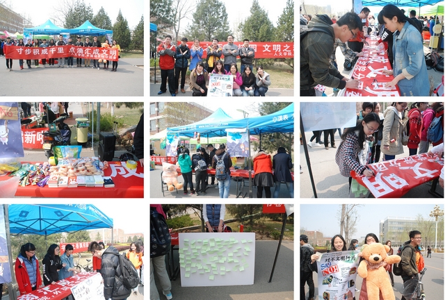 為深入踐行社會(huì)主義核心價(jià)值觀,樹立北理的文明校園形象,在校團(tuán)委和學(xué)院黨委的指導(dǎo)下,由北京理工大學(xué)人文與社會(huì)與科學(xué)學(xué)院團(tuán)委和外國(guó)語學(xué)院團(tuán)委合辦的“踐行社會(huì)主義核心價(jià)值觀——共建文明校園”的文明宣傳周活動(dòng)于2015年4月6日至4月12日順利開展。在為期一周的文明宣傳中,大大小小、形式多樣的活動(dòng)更是給美麗的良鄉(xiāng)校園注入了文明的活力,同學(xué)們都以自己的實(shí)際行動(dòng)踐行社會(huì)主義核心價(jià)值觀,爭(zhēng)做社會(huì)主義核心價(jià)值觀的代言人。