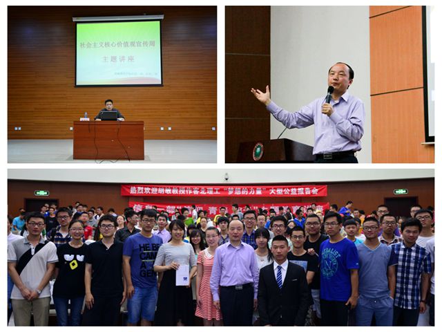 學(xué)部團(tuán)總支積極響應(yīng)校團(tuán)委號召開展思想領(lǐng)航工程,共舉辦兩場高水平主題教育講座。為了讓同學(xué)們對社會主義核心價值觀的內(nèi)涵和實(shí)踐途徑有更清晰的認(rèn)識,5月19日,信息一部在良鄉(xiāng)校區(qū)圖書館音樂廳舉辦了《社會主義核心價值觀的熱話題和冷思考》主題講座,主講嘉賓為中央黨校中國特色社會主義理論體系研究中心研究室主任黃相懷。黃相懷分別從核心價值觀的現(xiàn)實(shí)意義、內(nèi)容理解、如何培育和踐行社會主義核心價值觀等三個方面進(jìn)行了分享。他通過對比中西方文化和社會現(xiàn)實(shí),指出只有社會主義核心價值觀才能指導(dǎo)我們遵循價值原則體驗(yàn)幸??鞓贰Vv座最后,黃主任用3個W總結(jié)了如何培育和踐行社會主義核心價值觀。即:閱讀思考,保證頭腦“溫”度;追本溯源,認(rèn)識“文”化的重要性;修煉內(nèi)心,“穩(wěn)”中磨練。