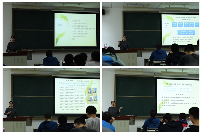衡靖書(shū)記具體分析了大學(xué)各個(gè)階段的主要任務(wù),希望同學(xué)們要盡快確立自身目標(biāo),建立學(xué)業(yè)規(guī)劃;還就學(xué)生工作中可能出現(xiàn)的問(wèn)題,宿舍生活中可能出現(xiàn)的矛盾和人際交往中可能出現(xiàn)的阻礙為同學(xué)們作出悉心的解答,讓同學(xué)們對(duì)大學(xué)生活有了更深刻的理解與認(rèn)識(shí),幫助同學(xué)們盡快地適應(yīng)大學(xué)生活。