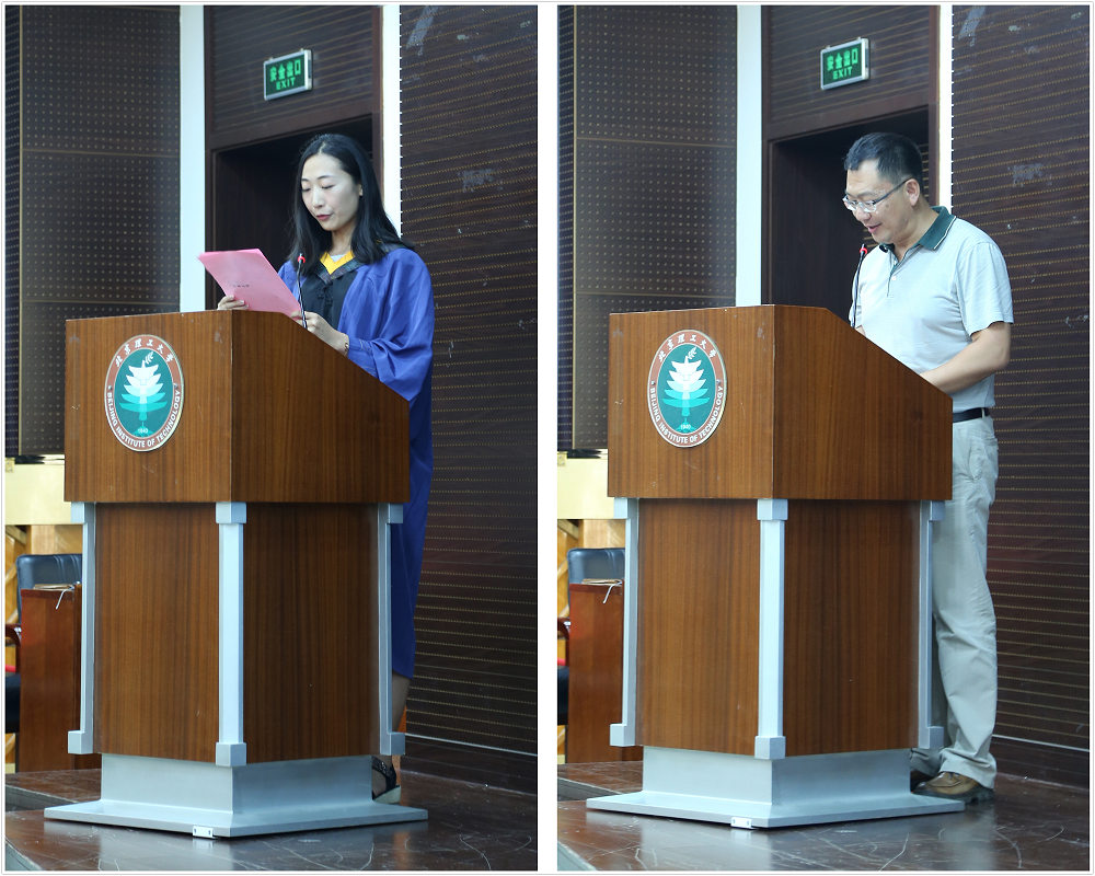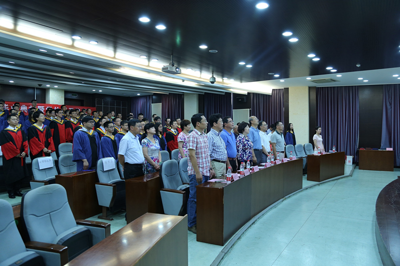 畢業(yè)典禮在莊嚴的國歌聲中開始。首先由副院長王寧飛宣讀學位授予決定:經(jīng)學位委員會審核通過,宇航學院2016屆畢業(yè)研究生共56人獲得碩士學位,24人獲得博士學位。